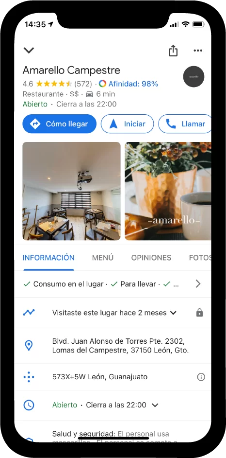 Administra la información que los usuarios de Google encuentran cuando buscan tu empresa o los productos y servicios que ofreces. Cuando las personas encuentran tu empresa en Google Maps y la Búsqueda, pueden encontrar información como tu horario de atención, sitio web y dirección.